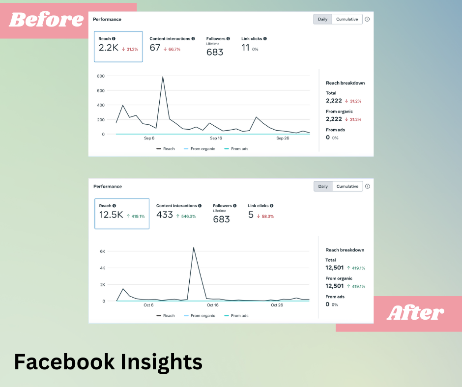 Objective: The client sought to enhance her social media presence by optimizing aesthetics and engagement, attracting new customers, and strengthening her overall online visibility.